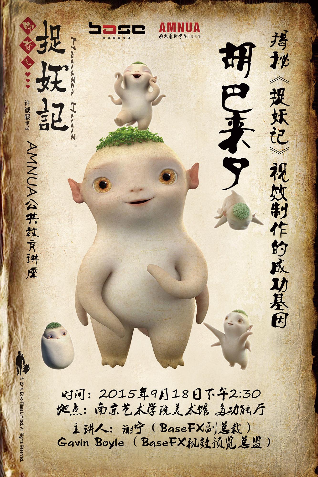 9月18日,操办《捉妖记》视觉特效、亚洲领先的视效公司Base FX将来到南京艺术学院美术馆跟同学们分享《捉妖记》的特效制作的成功因素。届时Base FX视效预览总监Gavin Boyle将着重介绍视效预览的制作体验。视效预览是目前新兴的电影特效服务环节,一般由动画师利用资产(模型、环境、材质贴图、装配等)进行制作,对于影片的规划、拍摄及后期制作均有特别重要的意义。Base FX的联合创始人、副总裁谢宁也将来到现场,为大家介绍国内电影特效的发展。他也在极力推动中国电影后期产业联盟的进程,希望通过BASE的努力,为中国的特效行业创造更好的就业和工作环境。对谈过程中,欢迎动画系专业、数字媒体专业的师生,以及动画、特效爱好者积极与主讲人互动交流。