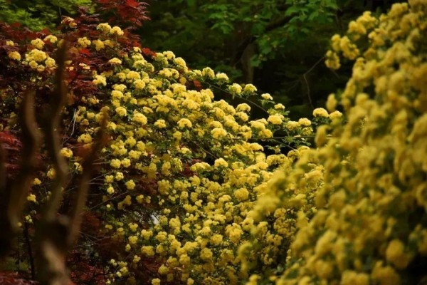 4 月下旬至 5 月中旬攀架成“瀑”,小重瓣花密集,奇香。复叶细长带小锯齿,花叶同裁可得星点+线条双重纹理,蓝影如碎金洒落。