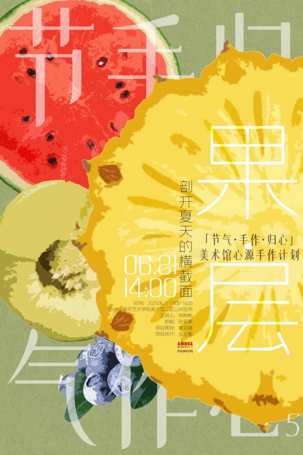 夏至时节,阳气最盛,万物繁茂,正是瓜果飘香、生机勃勃的时刻。「果·层」——剖开夏天的横截面活动以当季鲜果为灵感源泉,邀请参与者在综合材料的拼贴创作中,深度感知自然的丰盈与生命的层次。
