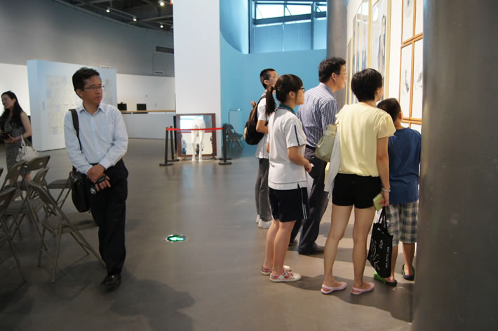 在两周的导览工作中,讲解队接待了一批又一批参观团队,同学们平实的解说语言、热情洋溢的解说风格得到了观众的一致认可。一位观众在听完讲解后坦言,‘一直以来对当代艺术有莫名的距离感,作品中似乎透着某种玄妙的气息,很难走近,更难理解。较之传统艺术,当代艺术缺乏群众基础,人们很少去关注,更不会作为话题去讨论,应该说之前对当代艺术更多持有负面的态度。但通过这次导览,孩子们用平实的语言为艺术家和观众嫁接了一座沟通的桥梁,原本让人感觉讳莫如深的艺术作品变得鲜活、真实起来。孩子们在讲解的同时加入了很多个人的所思所想,这使得讲解过程变得非常有趣。也让观众认识到,欣赏艺术作品不仅需要我们的眼睛,敞开我们的心扉,用心去感受,才可能获得意想不到的艺术体验。’
