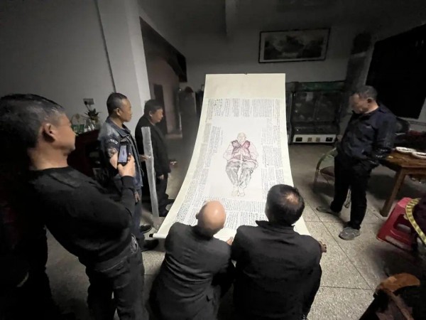 展览从美碑对渼陂村生活的考现,探寻人文空间与家族记忆;到善碑的精神刻度、佛教叙事的图像实验,呈现罗汉图的两界精神;再到真碑对现实的凝视,关注现代语境下的游弋,探讨人物符号的虚实辩证。这三重维度层层递进抑或倒退,如前所述通过倒置传统意义上的“真、善、美”结构,展现了“雷子人式考现”的成果。依照这一主题线索,展览在空间设计上呼应南京艺术学院美术馆的独特结构,构建环形观展路线,采用镂空结构和镜面材质。观众在其中穿行、阅读、触碰,将历史与当下并置,雷子人重新激活的传统图式与当代欲望的错配,如同碑文里文字的剥落与新刻叠印。真正的碑铭,不在石质的永恒,而在无数个“现时在场”的生命印记中。最后是人的问题,就像我在渼陂借着门缝看到一位老人在家中仰躺着对天喘息,空气进入肺腔是多么珍贵,不要仅看到他的无助,渼陂伴着他的幸福,幸福在于还能待在自己家里生·活。生·活让雷子人的笔不是画笔,是地质锤,每一次落笔都在敲打时代的岩芯。这是雷子人的幸福与美善真。