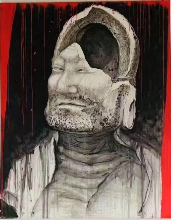 他的佛教文化题材作品并非单纯的宗教绘画,而是对“善”的个体思辨。他通过佛像、经变图等传统元素,探讨当代人的精神困境。雷子人与佛教的联系始于2008 年到2009年的三个多月间受邀赴台,在台湾佛光山进行艺术研究及佛法参修期间,为众多法师及功德主取像描影的经历。期间雷子人拜见了星云大师、心定大和尚等众多法师,并为他们写生造像。
