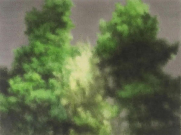 “竹深林密虫鸣处,时有微凉不是风。”——宋人杨万里的诗,并非为了单纯描写一刻夏夜令人心旷神怡的凉意,而是在提示一种更为隐微的存在:它不依赖空气的流动,却能被肌肤感知,能使心绪波动。正是这种由不可见之物引发的感受,构成了康海涛绘画的独特气息。他的夜景绘画常常拒绝戏剧化的描写,不依赖强烈的光影对比,而是在幽蓝、深绿与灰白的层层渗透中,呈现一种不易命名的温度。这种温度像是杨万里笔下的“微凉”,却并不来自风,而更像是时间本身的质感。它往往出现在喧嚣已远、却未彻底入眠的时刻:人间的灯火尚在,声音却降到最低,意识既未完全清醒,也未彻底沉入黑暗。康海涛的画凝固的正是这种“中间地带”,在那里,昼与夜的交替并不以明暗为界,而是以感知的转折为信号——一种心绪的停顿,一丝无法被轻易解释的凉意。艺术家自陈,他自中学时代便喜欢在夜里漫步,最初选择描绘夜景,仅仅是为了表现夜色本身的单纯之美:宁静而神秘的氛围,光与影的多重变化,都足以让人产生描绘的冲动。然而随着创作的深入,他逐渐意识到,长久的酝酿和偶然的一瞥,对风景画面的最终呈现并无根本差异。理性的分析渐渐退居其次,直觉成为主导。对他而言,直觉更复杂、更有包容性,也更具爆发力。由此,他放弃了为画面预设意义的方式,转而专注于绘画中“纯粹”的存在。在他的笔下,树象征着自然的宁静与单纯,房子则成为朴素之物的象征,而光的出现使画面获得灵魂。反复叠加的笔触制造出虚幻不实的视觉体验,让作品呈现出一种既属于现实,又超越现实的氛围。意义总是在作品完成之后才被提炼出来,而这种意义与艺术家、与观者的关系始终是开放的、不断变化的。